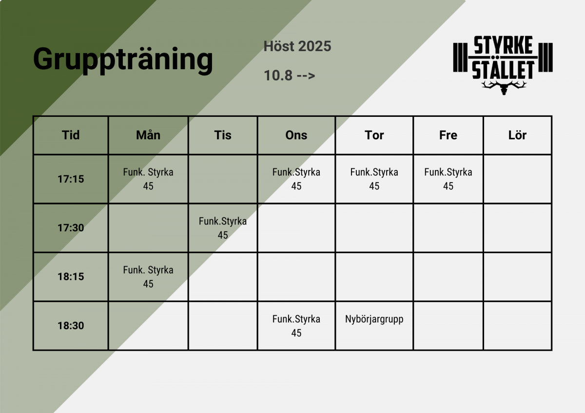 Om du vill bli starkare och rörligare så har vi träningen för dig. Vi tränar i en liten grupp om max 6 personer tillsammans med en PT som hjälper dig med tekniken genom hela passet.